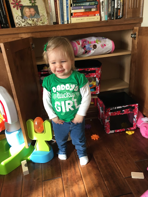 My entire goal was to get a cute picture of her smiling and showing "Daddy's Lucky Girl" on her shirt. Apparently, my years of professional photography experience did not prepare me to capture images of my own child.
